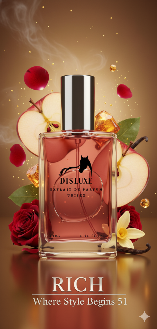Encased in a transparent 30ml glass bottle with a polished silver cap, DTS LUXE (RICH) Perfume embodies modern luxury and effortless sophistication.
