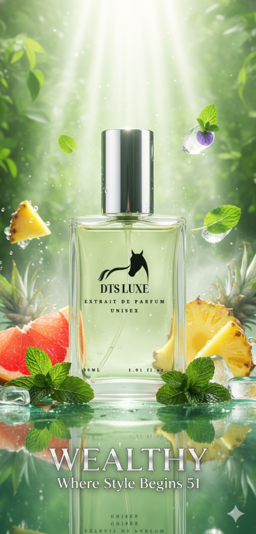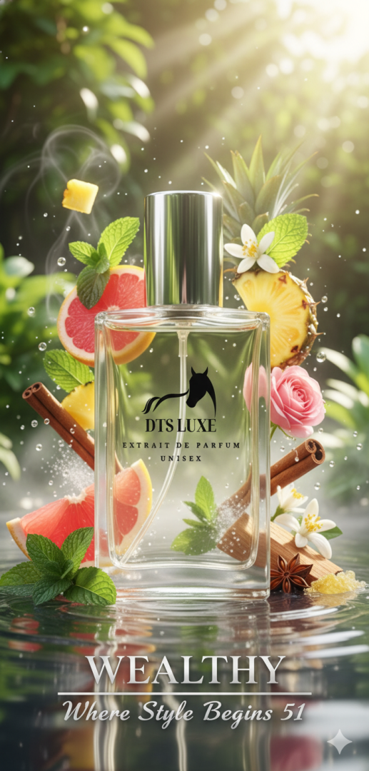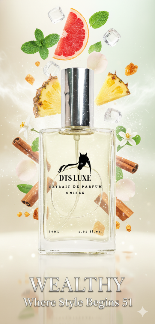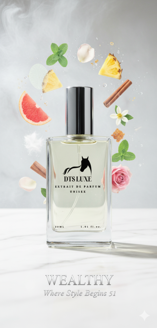 Encased in a transparent 30ml glass bottle with a polished silver cap, DTS LUXE (WEALTHY) Perfume embodies clarity, focus, and refined luxury, making it perfect for any ambitious individual.